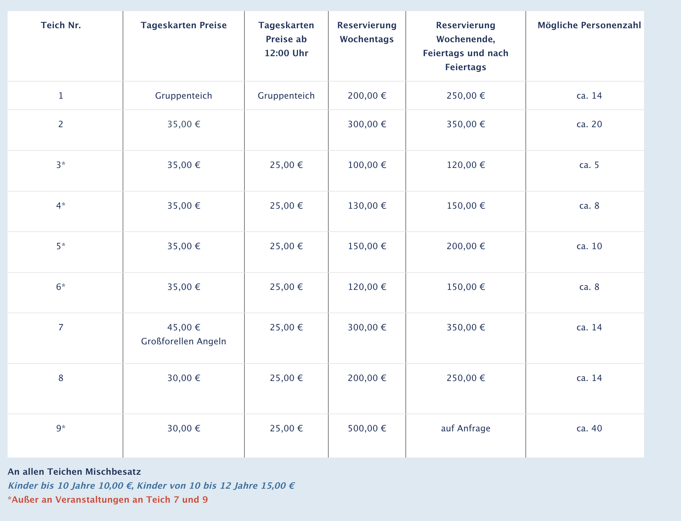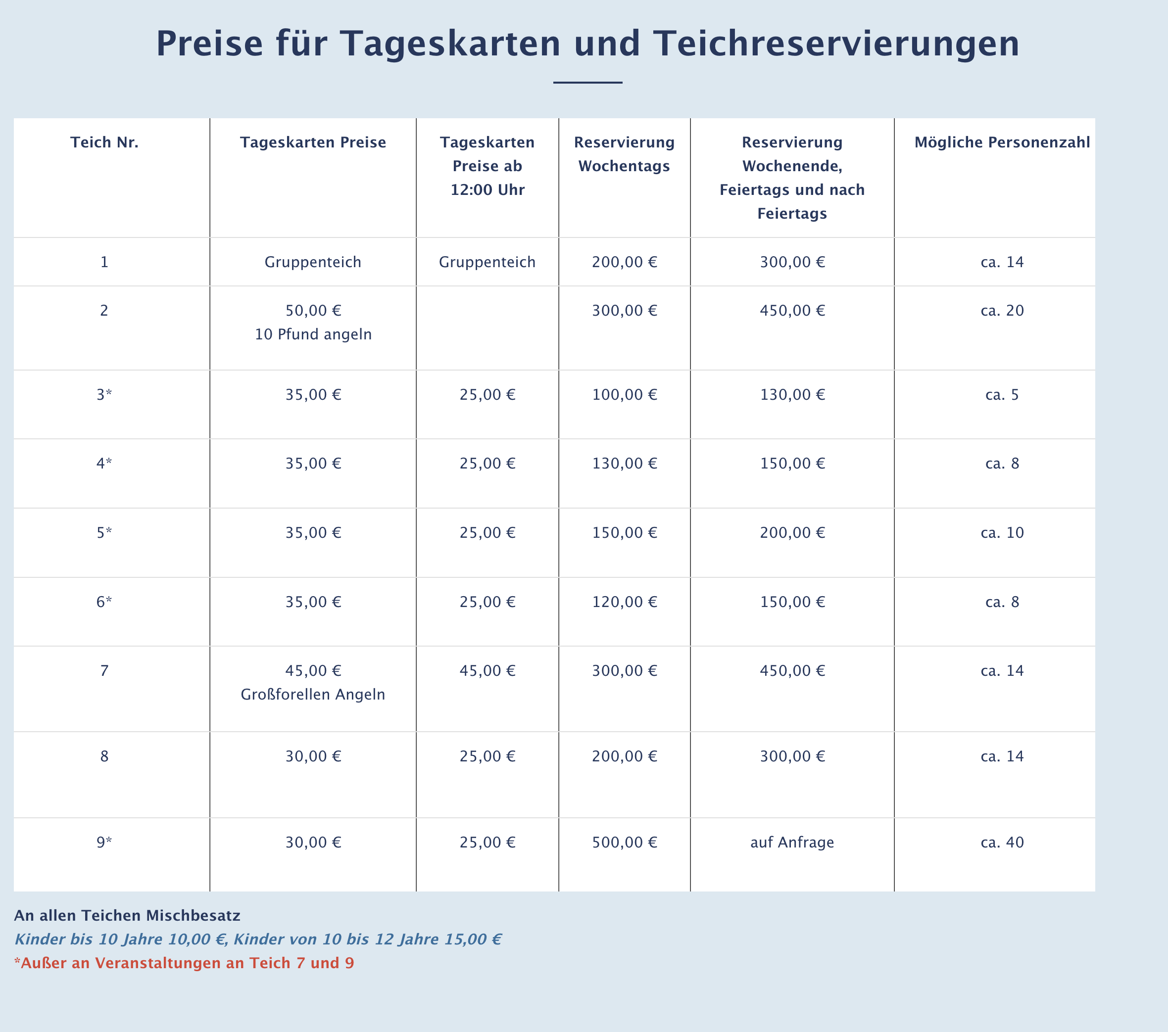 Anfragen für Teichreservierungen oder Sonstiges BITTE telefonisch unter 02295 / 5231.